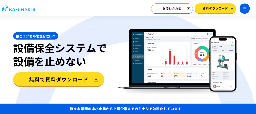 | カミナシ設備保全 | クラウド(SaaS)のみ | 紙帳票をそのままアプリ化 | 現場運用を変えずDX可能 |